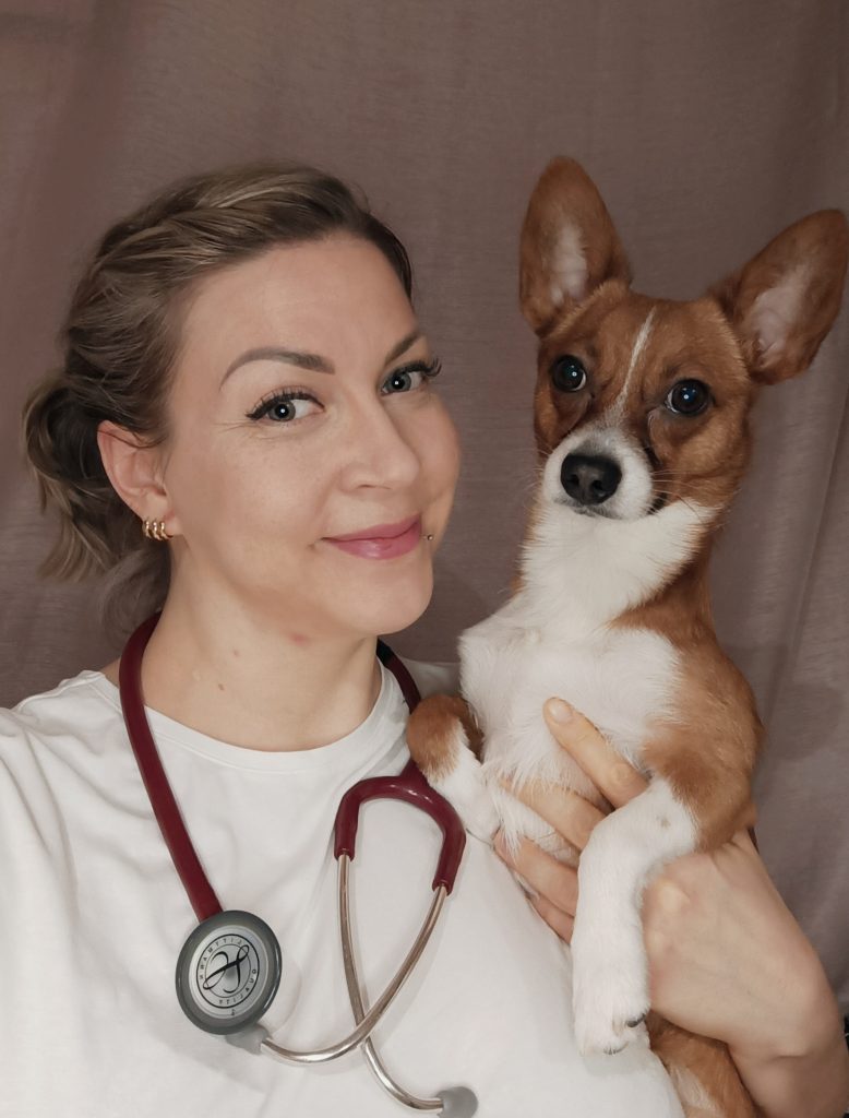 Olen Jutta Pietiläinen, eläinlääketieteen lisensiaatti ja toiminut pieneläinlääkärin tehtävissä vuodesta 2019 alkaen.